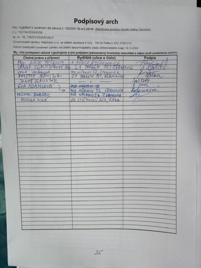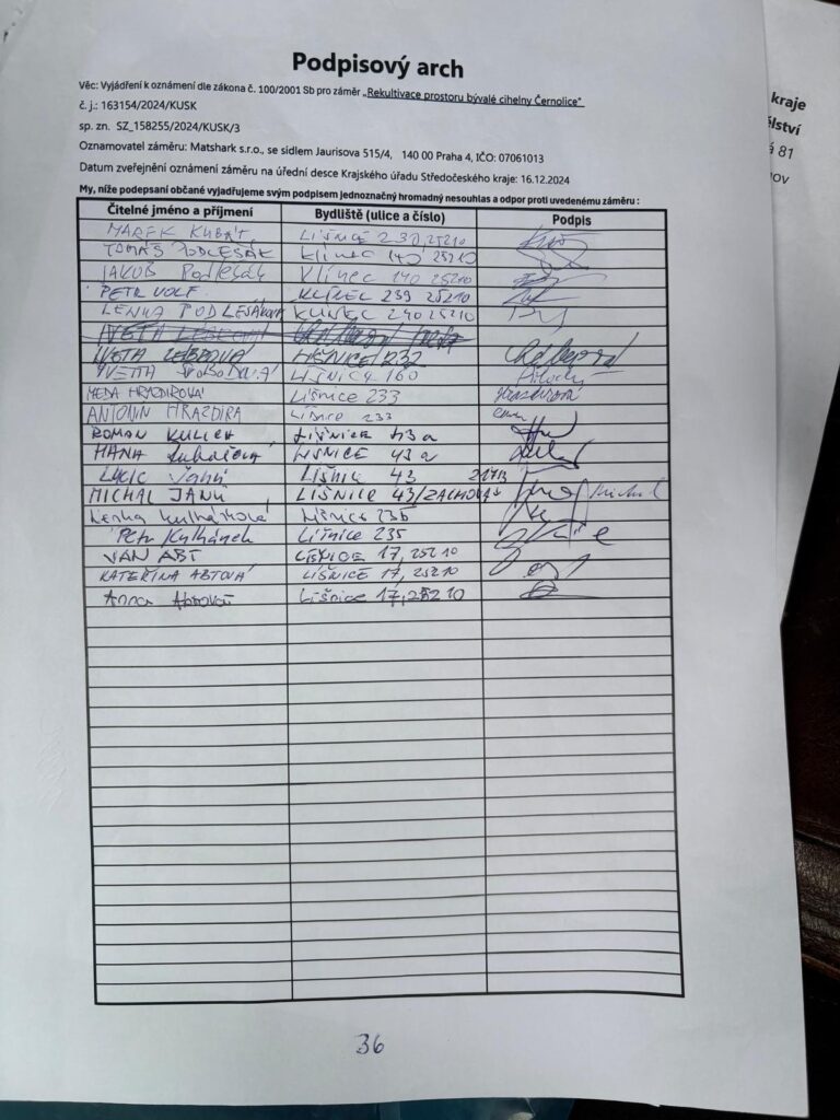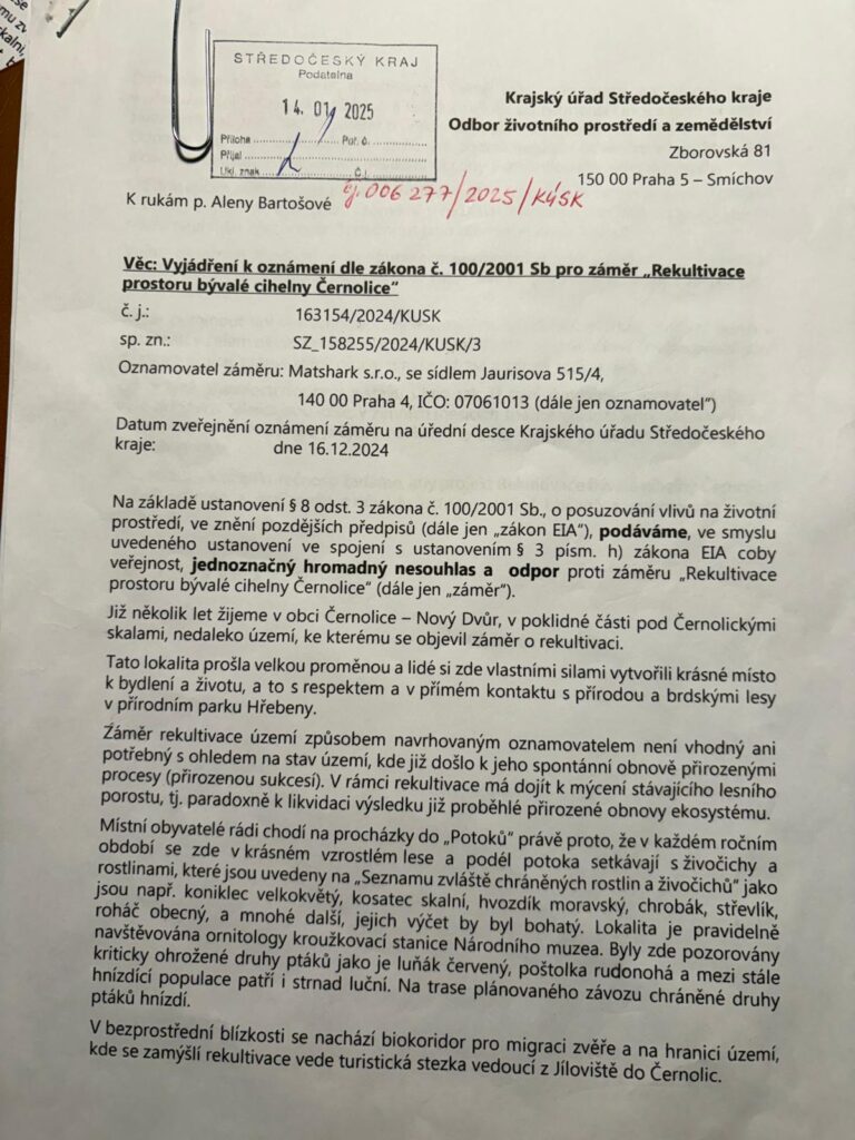 Oznamujeme všem, že dopis a 36 podpisových archů v příloze obsahujících 730 podpisů občanů Černolic a okolních obcí byl podán na KUSK.